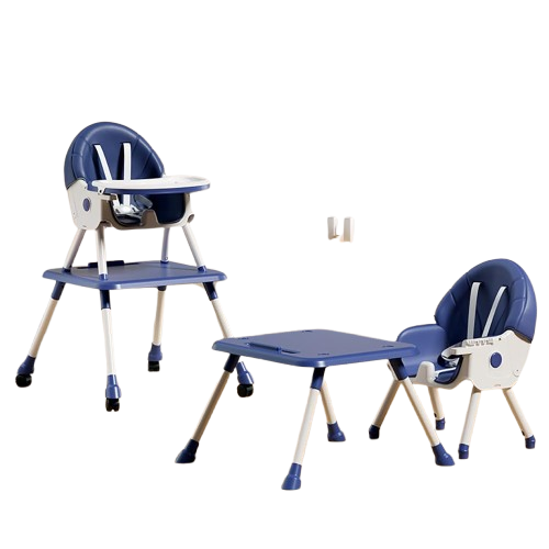كرسي مرتفع للأطفال 6 في 1، كراسي مرتفعة قابلة للتحويل للأطفال الصغار والرضع، مجموعة طاولة وكراسي/مقعد معزز/كرسي طعام للأطفال مع صينية قابلة للإزالة بأربعة أوضاع، وعجلات، وحزام أمان ووسادة من البولي يوريثان (أزرق)
